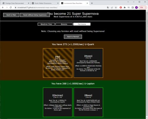 選択中は弱体化するけど育てることで強くなる感じか CharmもTauもいける気がしないな… Fermionの獲得量を増やしてくれるらしい そのかわり要求量の方も、ね Radiationも加速度的に強くなっていくらしい Pent…、ペンテーション?