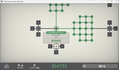 A Game About Feeding A Black Hole store.steampowered.com 下ルートにきたけど、電気小惑星とは…? なんかチェーンライトニングみたいなのが出てる? おーつよい 連鎖数と分岐率を上げるとかなり広範囲を破壊できるようになるな 小惑星の質量あがると獲得…