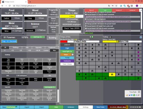 ぼくらのアイランド とりあえずペット証を取りきってみた 虹コインはすっからかん Trimps Trimps TrimpsはZone50あたりから進めない マクロも特に役に立ってない