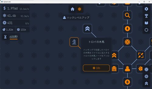 Upload Labs store.steampowered.com 今度こそトロイの木馬を購入 ハックパワーを消費するわけではなくて別枠らしい 感染させたファイルをアップロードすることでCPU、GPU、ダウンロード/アップロードを加速してくれるらしい デバッグなんかしてたらリリース…
