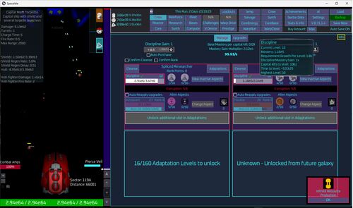 Unnamed Space Idle store.steampowered.com いまいちよくわからないけどオンの状態で育てて頭打ちになったらCleanseしてAdaptationを育てる、の繰り返しでいいのかな セクター120突破 ファイターシャードねえ ええやん Splice Crewのアプグレは…HumanityかC…