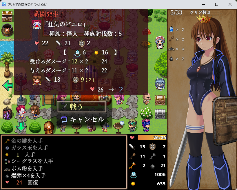 狂気のピエロを倒せるし、青スラのダメージを1に抑えられる