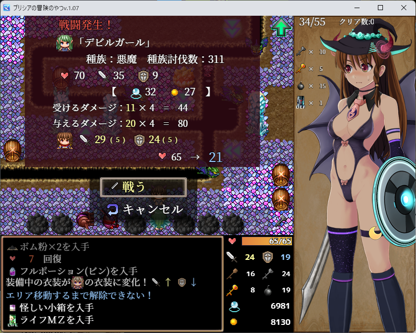 どれか1つでもステータスが上がればデビルガール倒せるようになるな