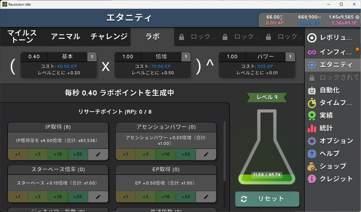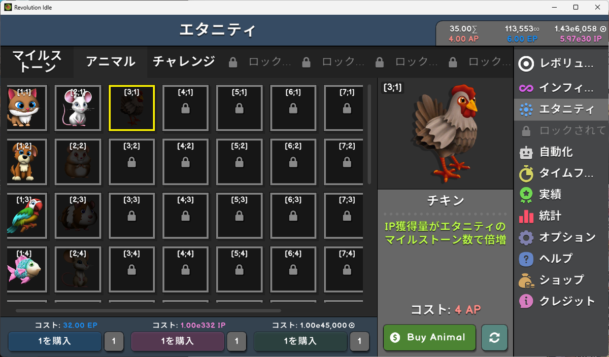 ポイントを振り分けて強化できるやつみたいだけど、とりあえずIP獲得量でも上げておくか…