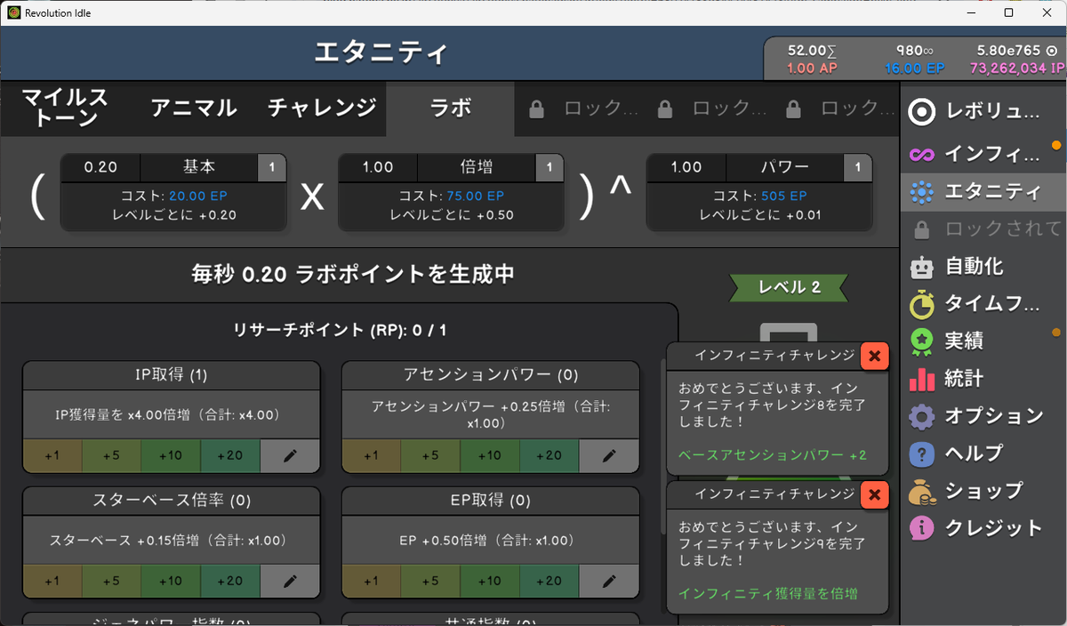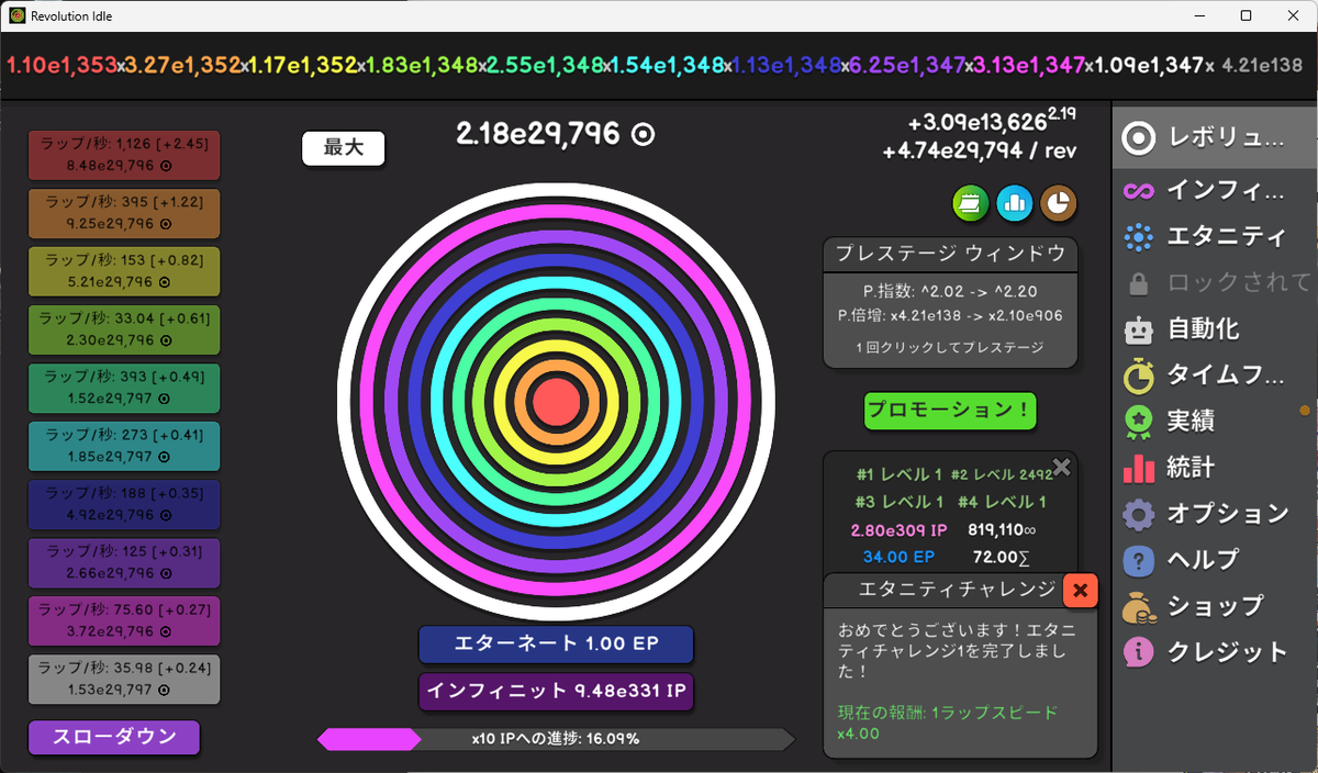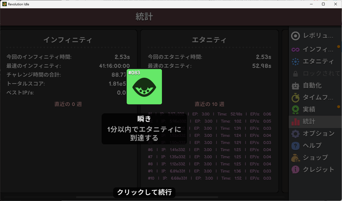 IP10倍のおかげでだいぶはやくなったしこのままエタニティ100回目指すか