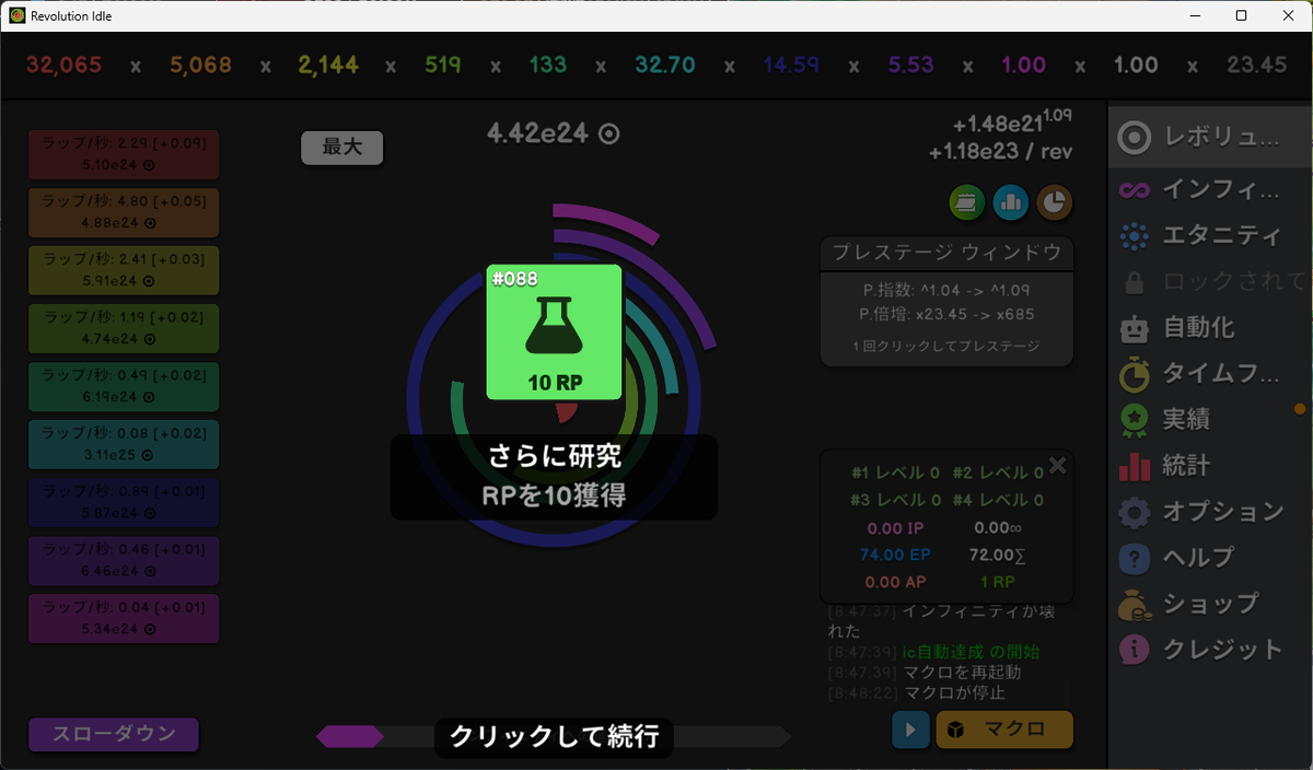 なんかなかなか自動インフィニティしない時があると思ったら、そういえば自動プレステージが発動しちゃうと自動インフィニティまでの間隔がリセットされるんだっけか?