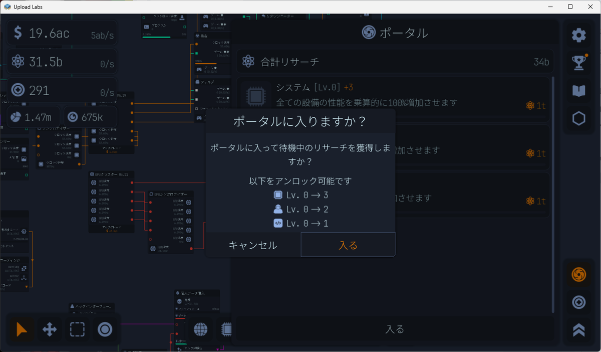 所持リサーチ値はリセットされてしまうのでラボで買えるものがあればポータルに入る前に買っておきましょう
