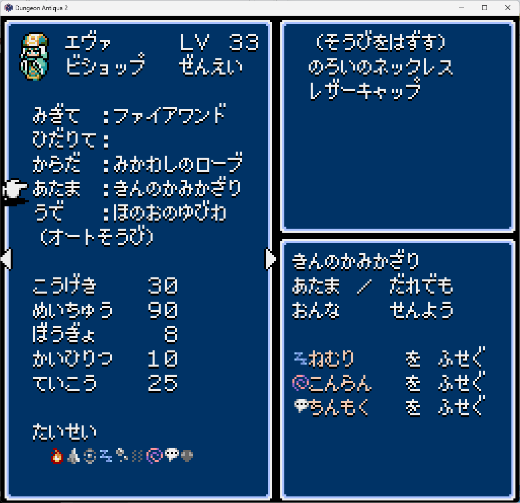 眠り混乱沈黙耐性の女専用防具…